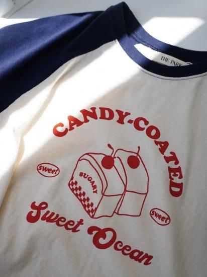 ケーキのデザインがかわいいPOPなラグランTシャツ。